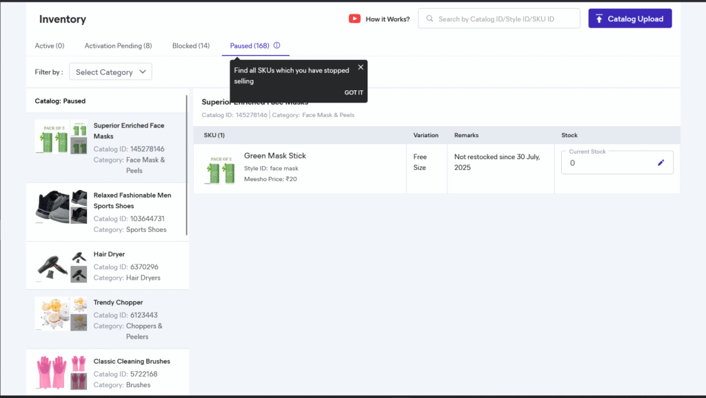 Meesho Inventory Overview – Product Listings